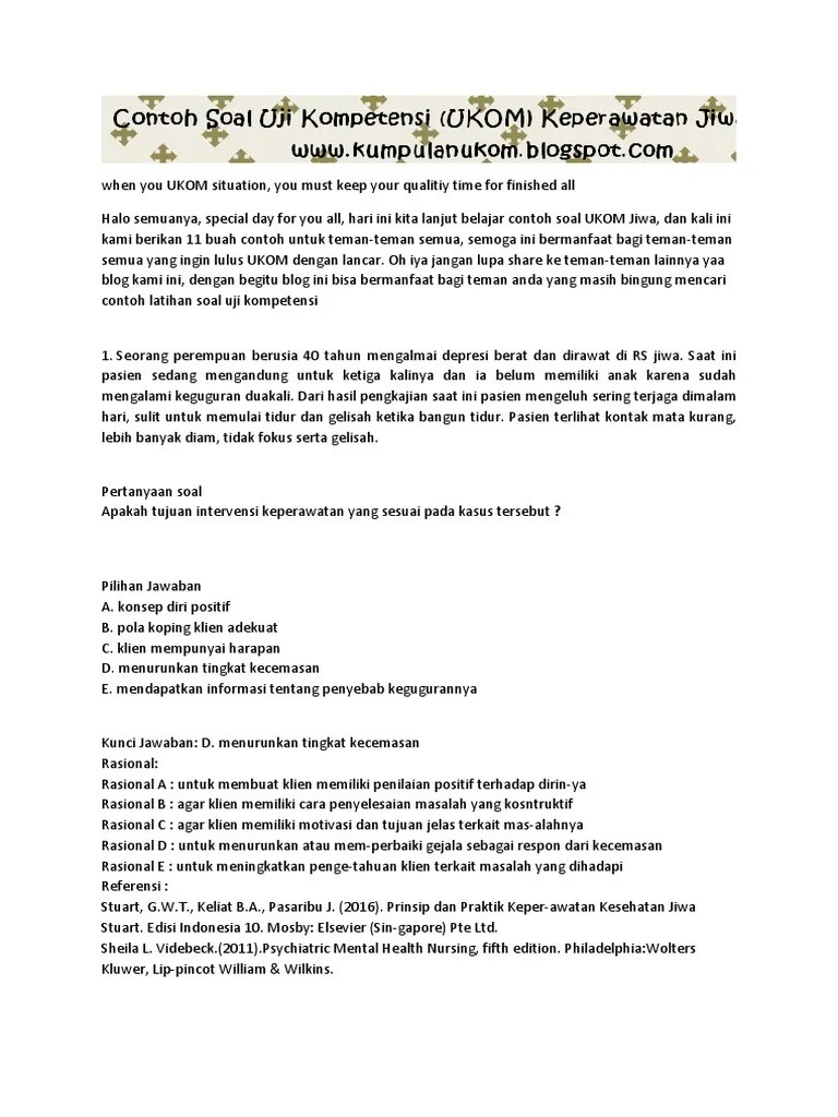 Berikut ini adalah latihan soal uji kompetensi (ukom) d3 bidan yang bersumber. Tindakan kolaborasi yang segera harus dilakukan dengan data yang ada pada kasus diatas. Berikut kami sajikan 7 buah soal ukom d3 bidan beserta kunci jawabannya. Contoh latihan soal dan jawaban ujian ukom. Saat seorang pendonor kornea meninggal dunia, tetes mata antibiotik dapat diresepkan dan diteteskan. Dan kunci jawaban serta pembahasannya. C yang perlu anda ketahui adalah memahami kata kunci dari soal tersebut. Klien mengeluh nyeri pada sendi lutut dan pergelangan tangan, nyeri skala sedang, sering muncul pagi hari. Soal ukom d3 keperawatan dan kunci jawaban guru galeri latihan uji kompetensi (ukom) perawat s1 ners terbaru lengkap edisi 109 contoh (d3 ners) ke 165. Soal ukom d3 keperawatan part i ini merupakan video soal soal latihan uji kompetensi perawat d3 indonesia, yang bersumber. Mengajarkan teknik distraksi dan relaksasi b. Dibawah ini adalah contoh soal uji kompetensi gawat darurat dan kunci jawaban. Dalam video ini kalian akan berlatih diantaranya:1.